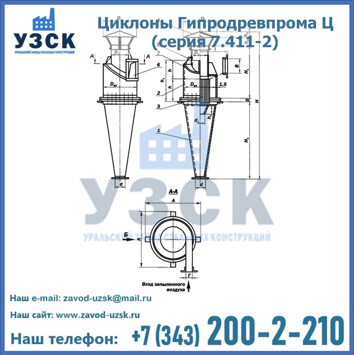 Циклоны Гипродревпрома Ц (серия 7.411-2) высокого качества можно купить в компании «УЗСК» в Волжском. Наши специалисты предоставят всю необходимую информацию информацию и помогут с выбором модели циклона. Подробные технические характеристики, конструкцию, параметры, ассортимент и стоимость продукции можно также найти на сайте УЗСК.