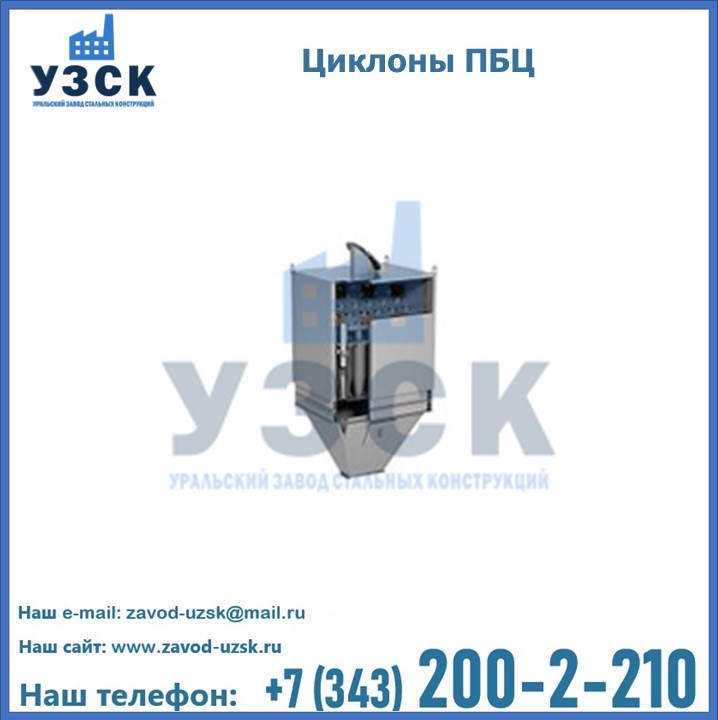 Завод «УЗСК» в Волжском предлагает приобрести циклоны ПБЦ и прочие устройства, полностью укомплектованные и готовые к эксплуатации. Мы гарантируем соответствие оборудования всем требованиям ГОСТ и ТУ, износостойкость и высокую производительность предлагаемого оборудования. Уральский Завод Стальных Конструкций изготавливает и продает надежное, эффективное и производительное оборудование, имеющее длительную гарантию и большой эксплуатационный ресурс. Если требуется изготовить циклон нестандартных размеров, то такой вариант выполнения заказа тоже предусмотрен, так как предприятие имеет собственные производственные площади и надежных поставщиков. На все поставляемое или производимое оборудование имеются чертежи и прочая техническая документация. Заказать и купить циклоны или прочее оборудование высокого качества и по доступной цене можно через наш сайт или по указанному в разделе «Контакты» телефону.