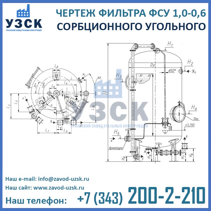 Наш завод (Уральский завод стальных конструкций) является производителем угольных фильтров, сам осуществляет изготовление и реализацию выпускаемой продукции. Приобретая фильтры ФСУ-1.0-0.6 в Волжском от производителя, Вы приобретаете оборудование без наценок всевозможных посредников, а также значительно экономите свое время. Фильтры ФСУ1.0-0.6 завода УЗСК – это гарантия качества, кратчайшие сроки изготовления и цена, которая Вам понравится.