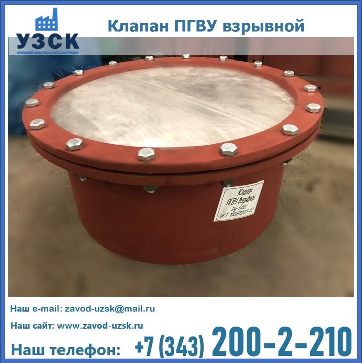 Взрывной предохранительный клапан ПГВУ в Волжском оборудуется в виде сквозного отверстия (окна) на взрывоопасном элементе энергетических установок. Такое окно закрывается специальной мембраной, а также оснащается створками или материалом, способным легко разрушиться в результате взрыва, что позволяет избежать высокого давления, образуемого взрывом.