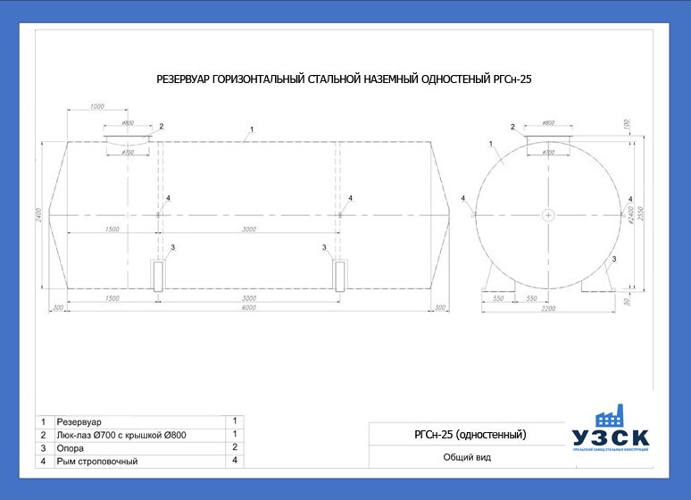 РГСн-25: горизонтальный резервуар одностенный наземного расположения;